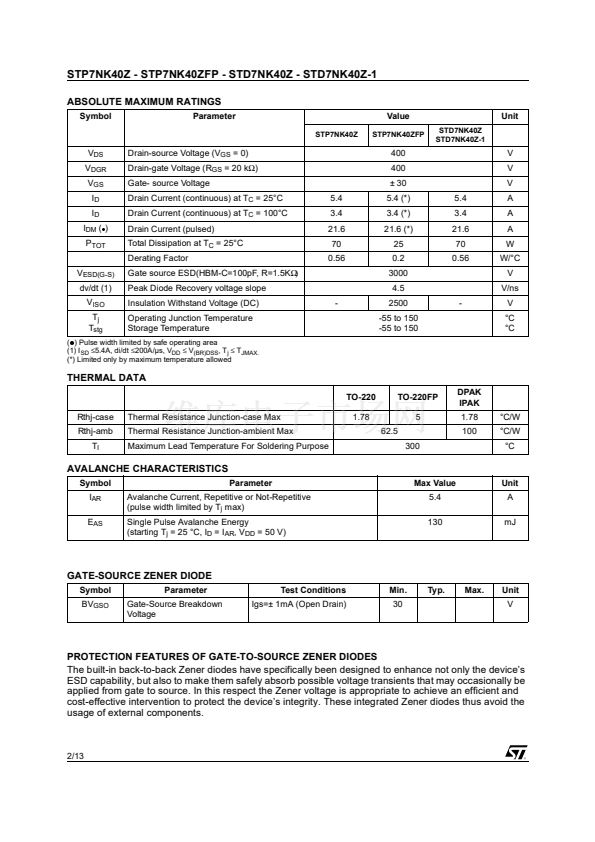STP7NK40Z View All Specifications