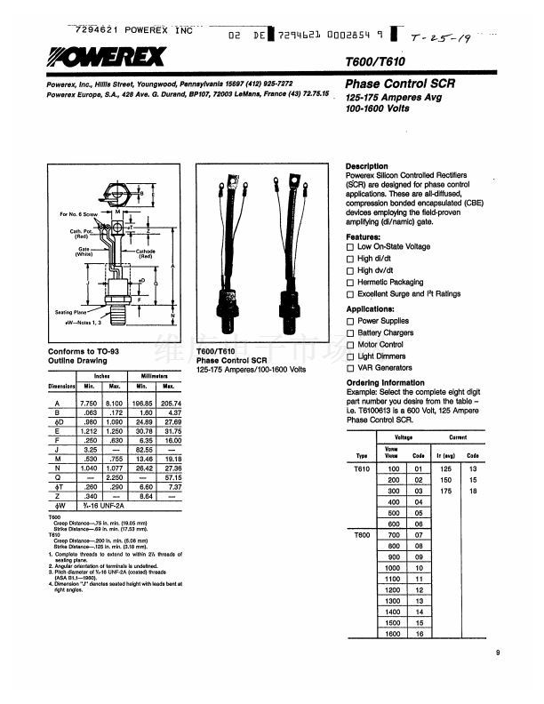 • Phase Control SCR (125-175 Amperes Avg 100-1600 Volts)