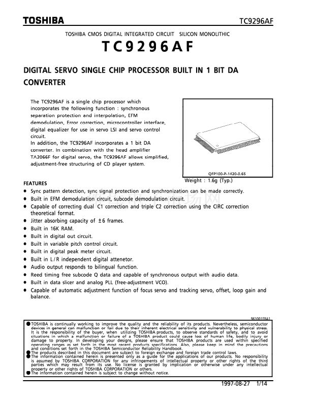 • DIGITAL SERVO SINGLE CHIP PROCESSOR BUILT IN 1 BIT DA CONVER...