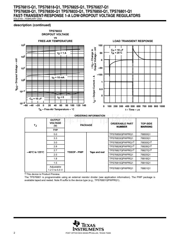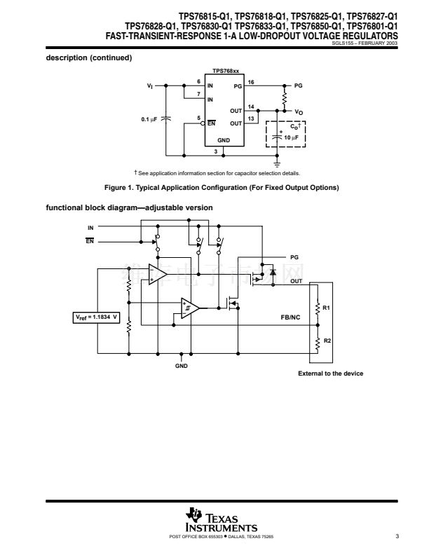 TPS76828-Q1, TPS76830-Q1 TPS76833-Q1, TPS76850-Q1, TPS76801-Q1