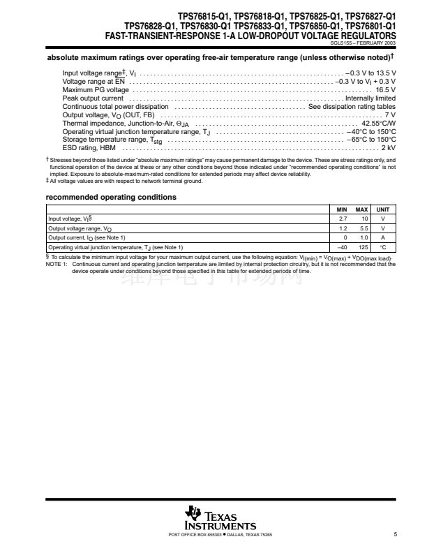TPS76815-Q1, TPS76818-Q1, TPS76825-Q1, TPS76827-Q1