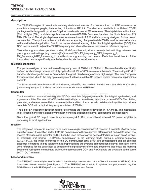 Single-Chip RF Transceiver for 868 MHz