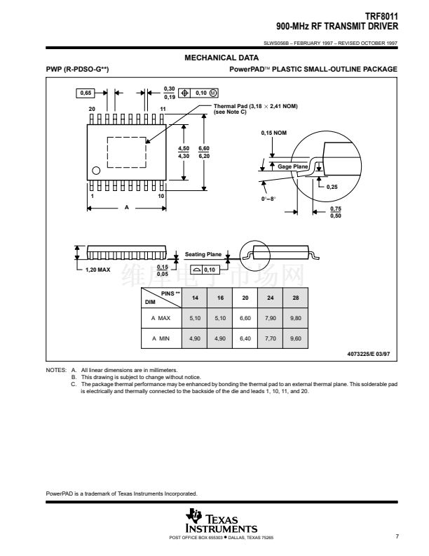 outline package (TSSOP) and is characterized for operation from 鈥?0擄C to 85擄C. The PWP package has a
