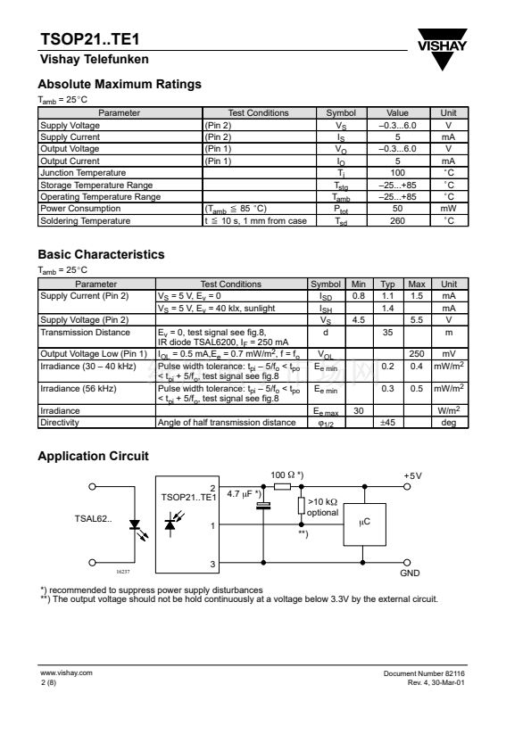 The TSOP21..TE1 鈥?series are miniaturized receivers