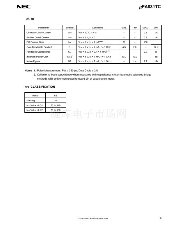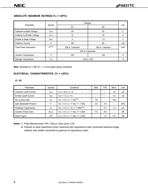Q1 : NF = 1.2 dB TYP., Q2 : NF = 1.4 dB TYP.