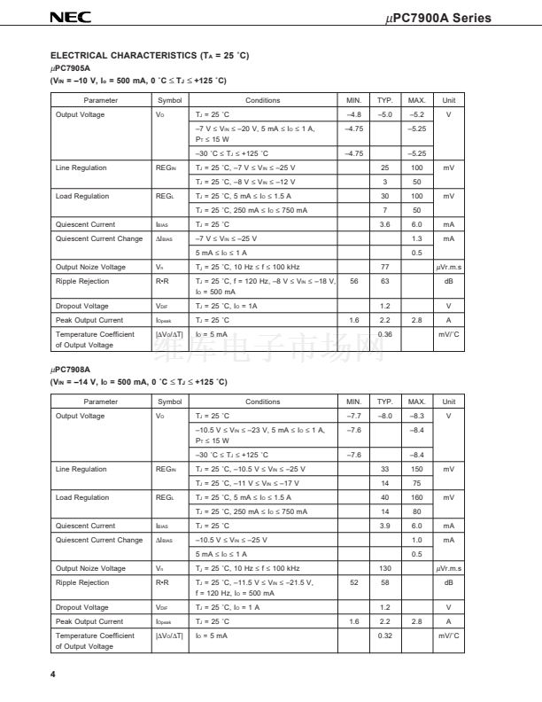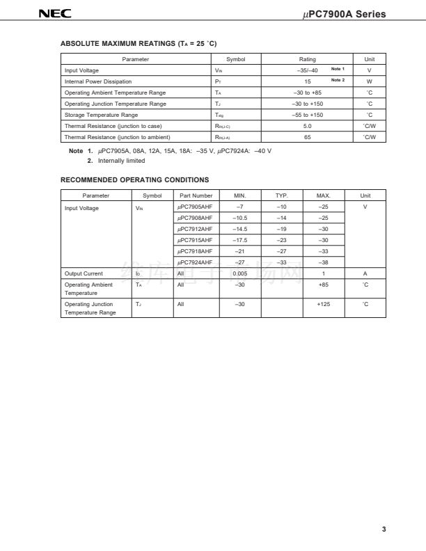 PC7900A series are monolithic three terminal negative regulators which employ internally current limiting, thermal