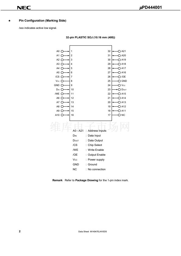 PD444001 is packaged in 32-pin PLASTIC SOJ.