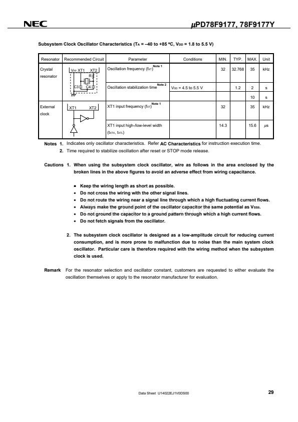 s: @ 32.768-kHz operation with subsystem clock)