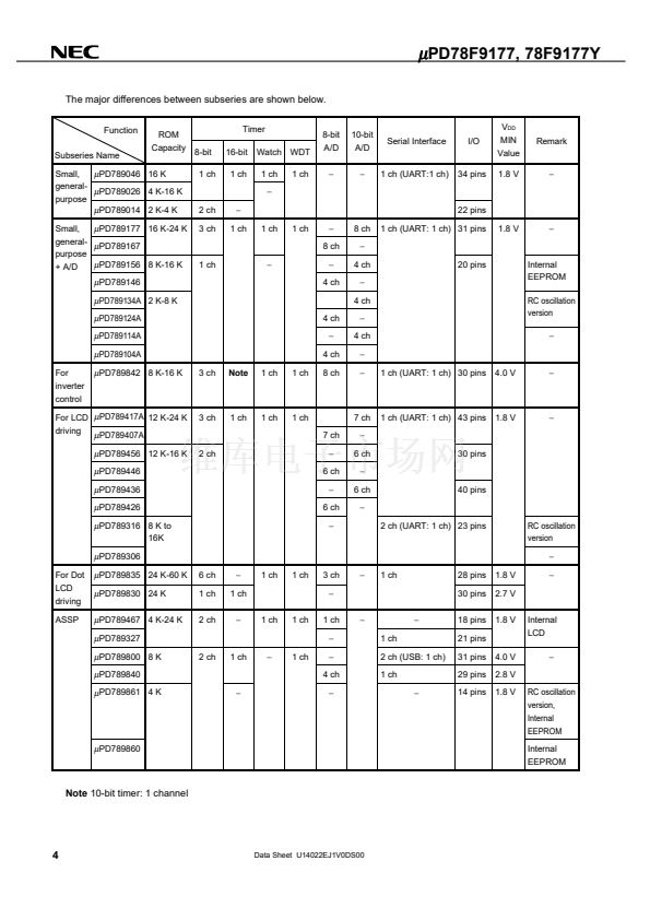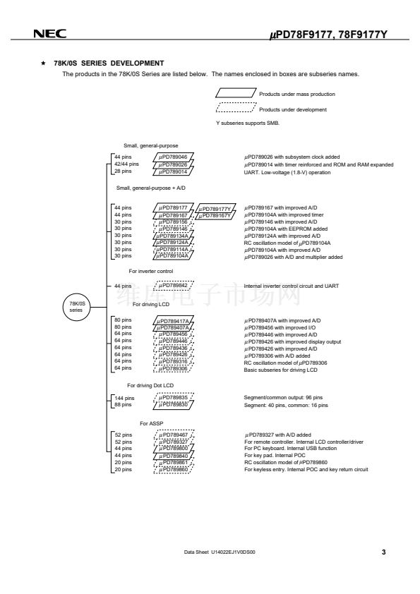 PD789177, 789177Y Subseries (small, general-purpose) in the 78K/0S