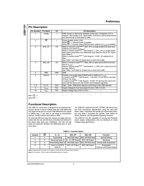 USB1101 USB 2.0 FS Peripheral Transceiver (Preliminary)