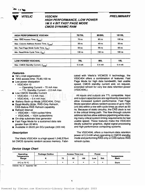 ULTRA-HIGH PERFORMANCE, LOW POWER 256K X 4 BIT FAST PAGE MOD...