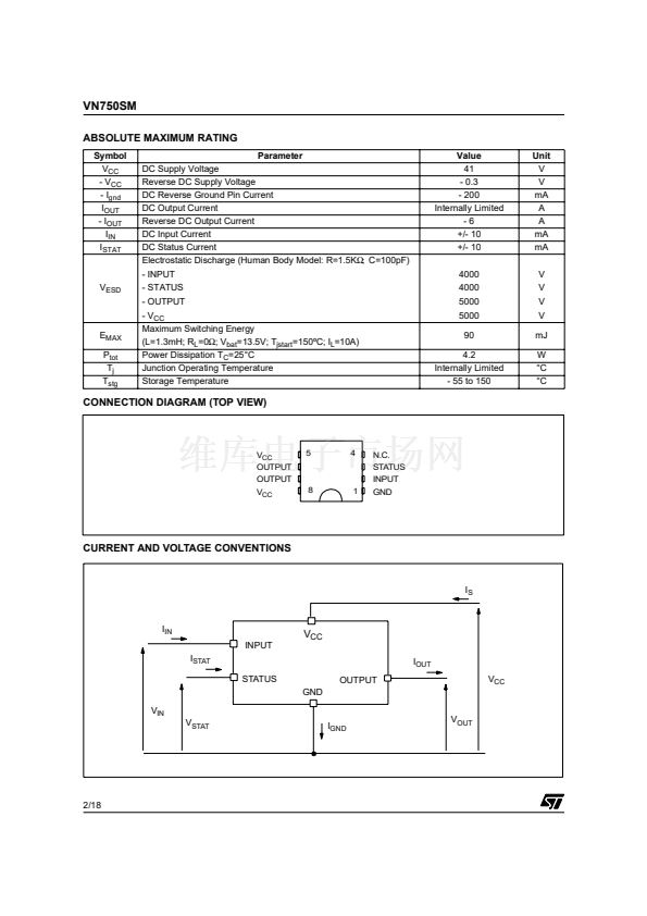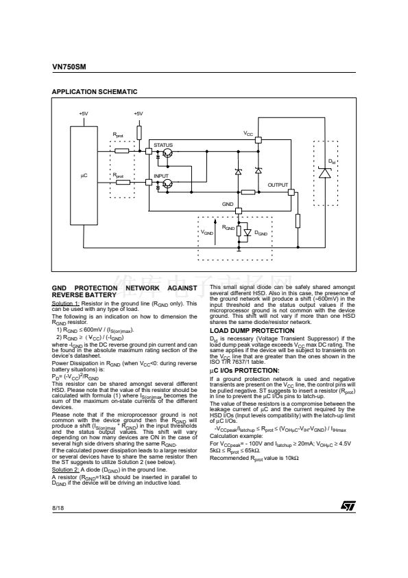The VN750SM is a monolithic device designed in