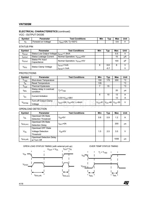 openload fault in the on state. Output shorted to