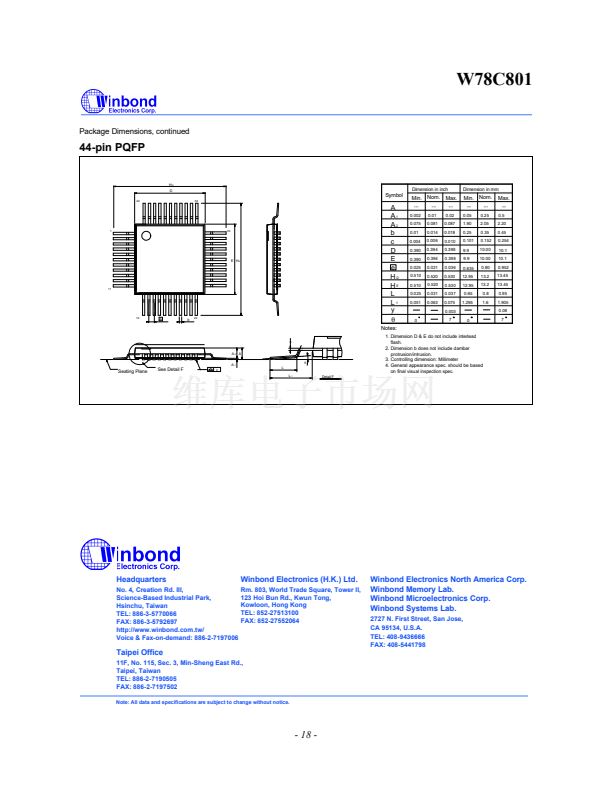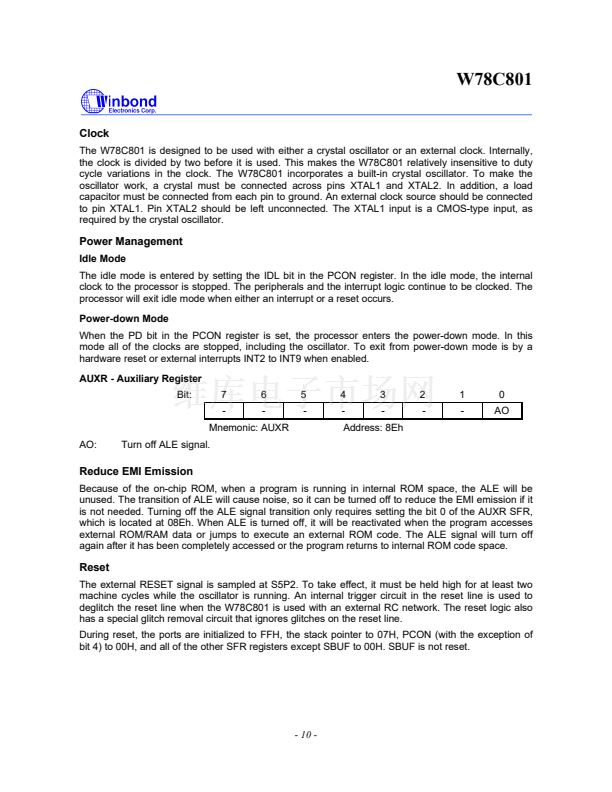 power consumption. The instruction set for the W78C801 is fully compatible with the standard 8051.