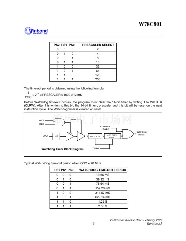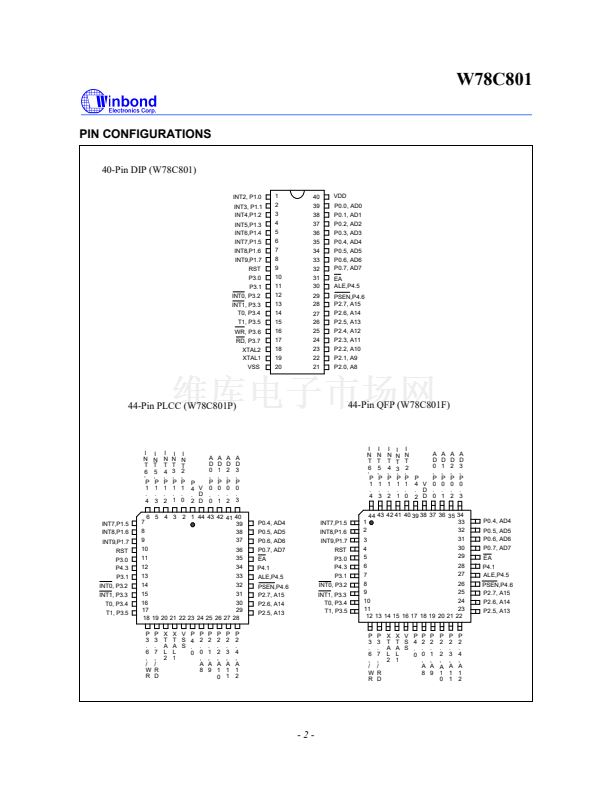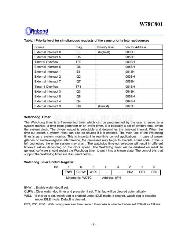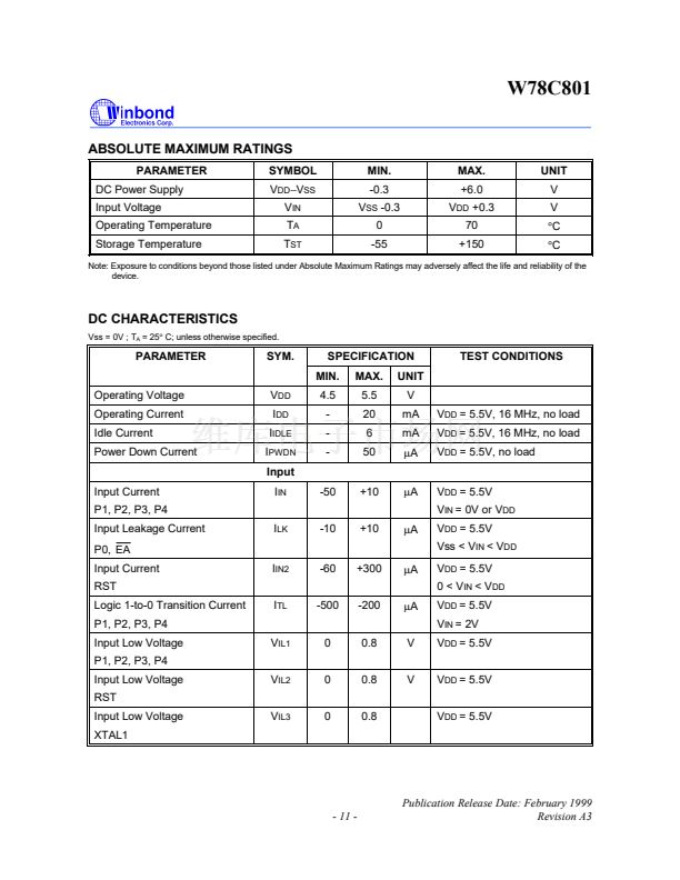 The W78C801 is an 8-bit microcontroller which can accommodate a wide frequency range with low
