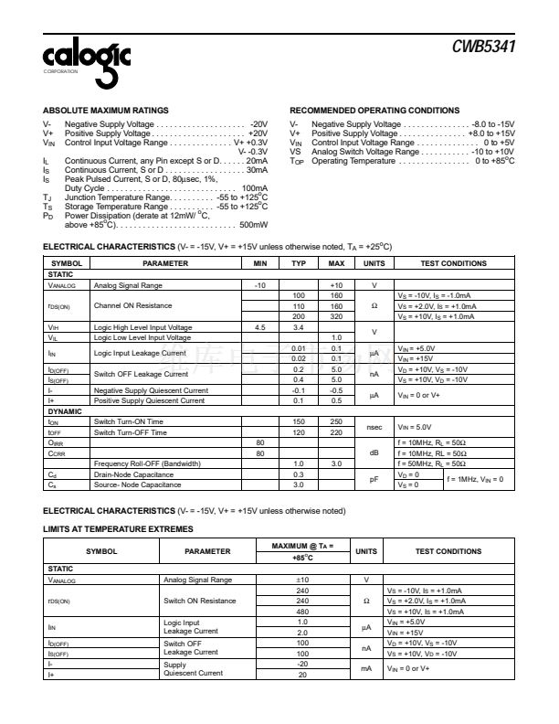 The CWB5341 is a Dual Monolithic Analog Switch. Designed